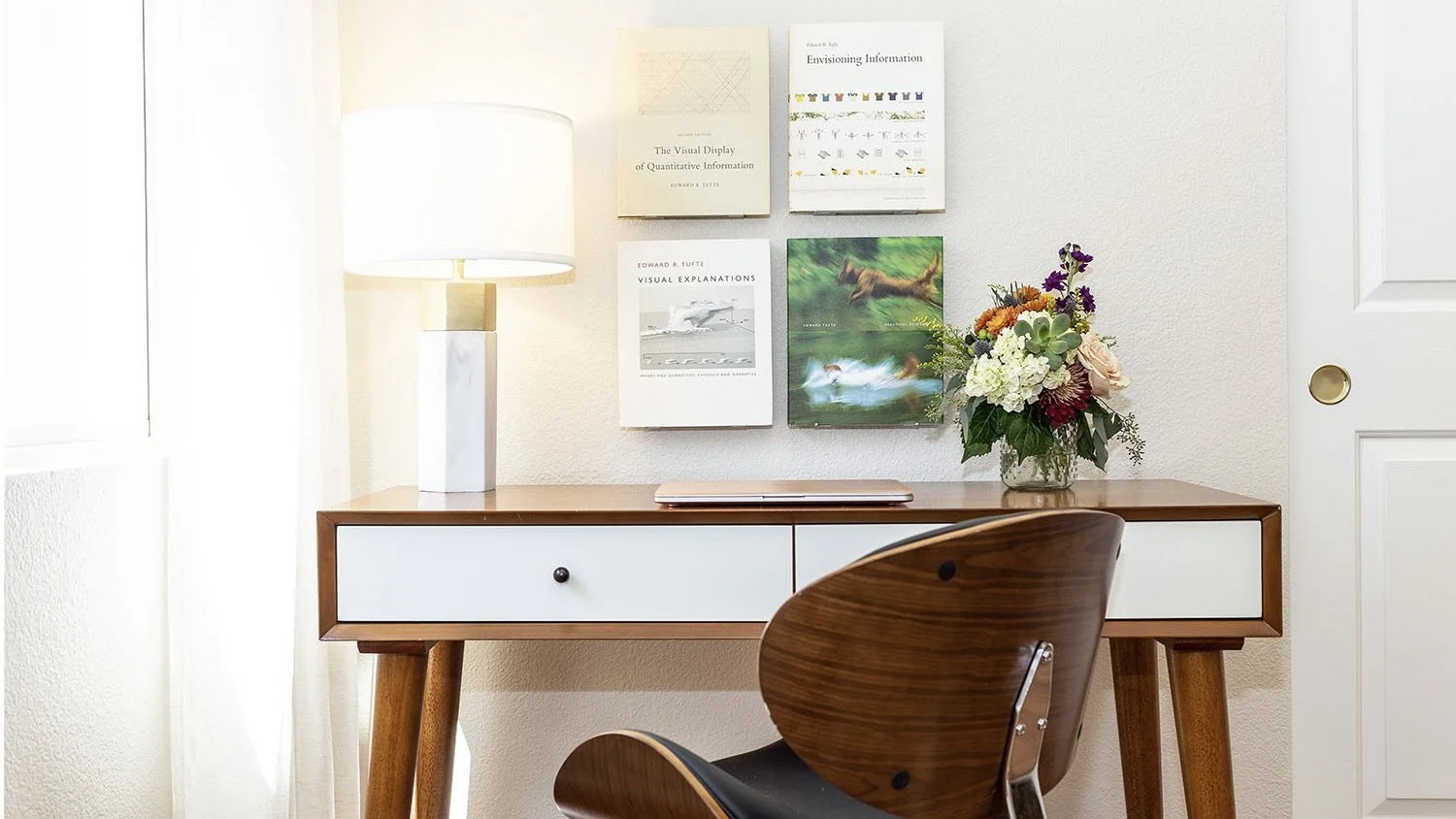 This family needed a reset, so Jessica helped them streamline their home and create calm on a tight budget. A restrained palette pulled together their bespoke pieces, giving everything room to breathe. Her client’s favorite moment? Arranging a simple, book series above the desk..